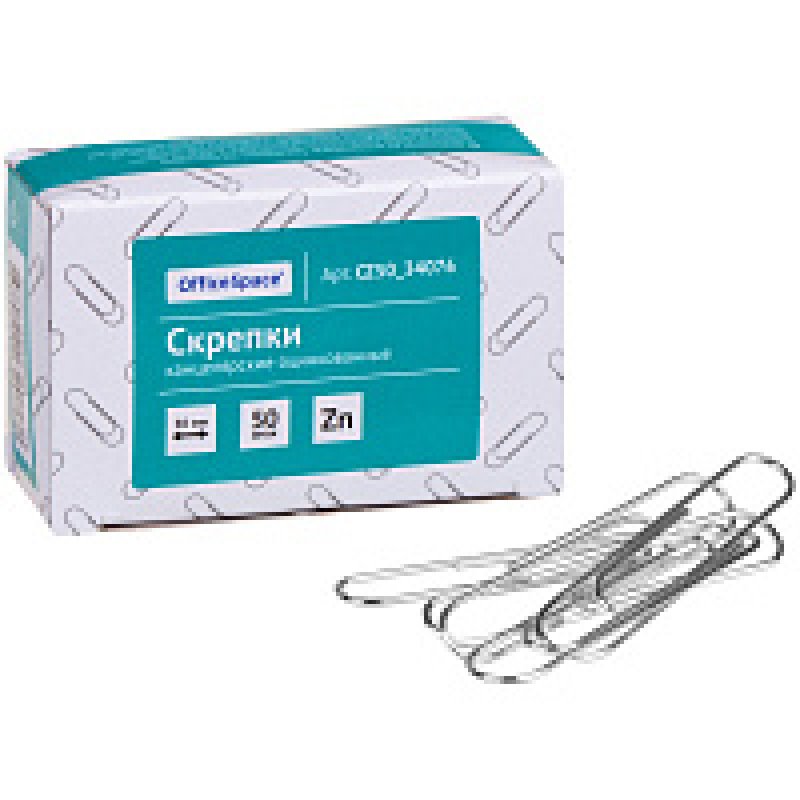 Скрепки 50 мм "OfficeSpace" оцинк., 50 шт., овал., серебристый